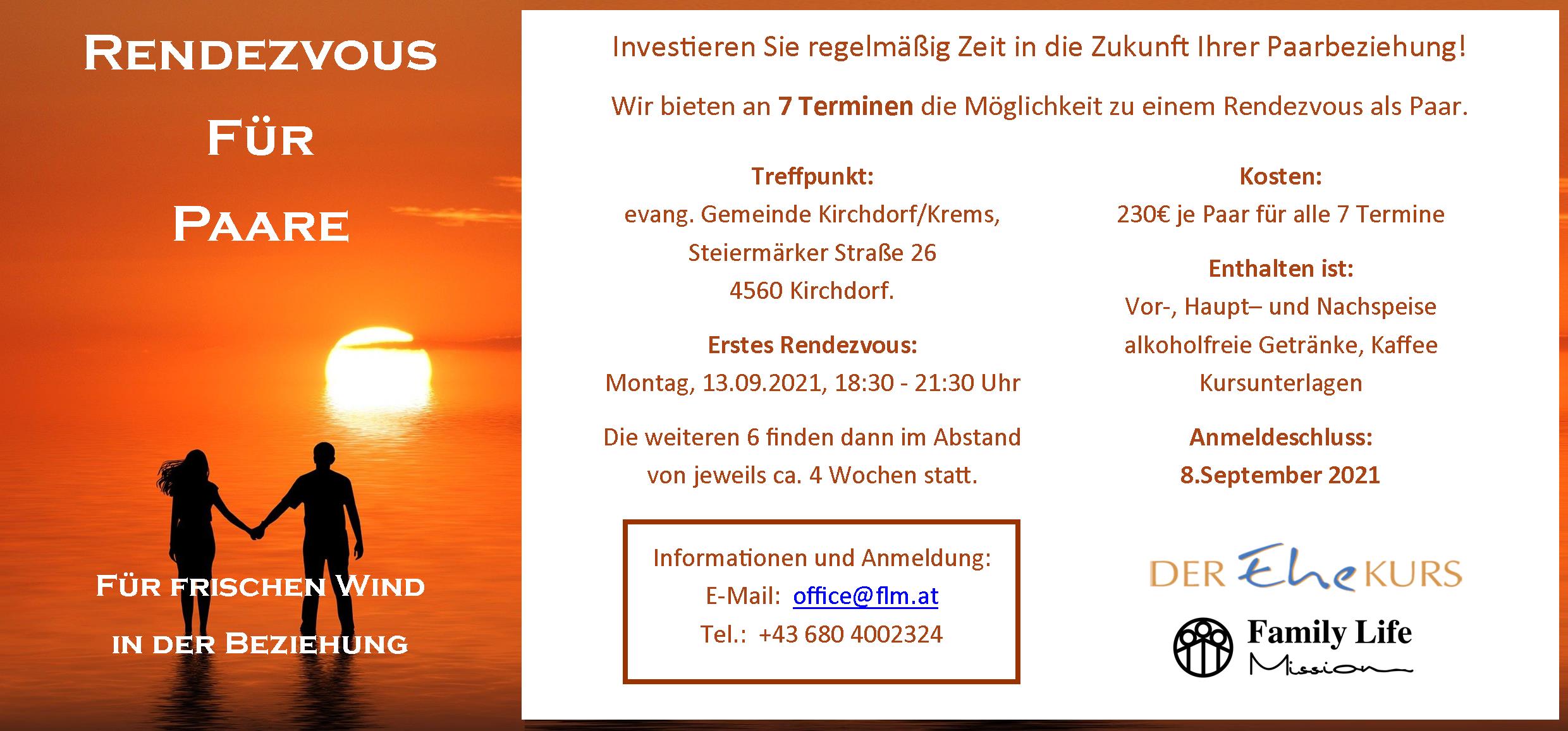 Wir bieten an 7 Vormittagen bzw. Abenden die Möglichkeit zu einem Rendezvous mit ihrem Partner.